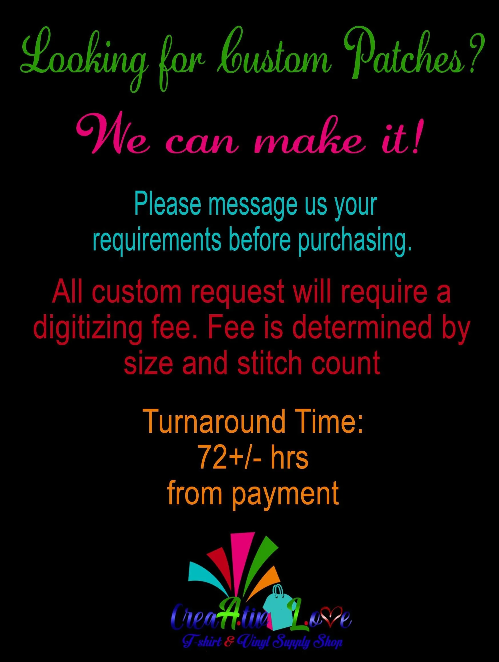 Need a larger size? Please message us for additional help!